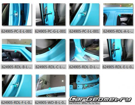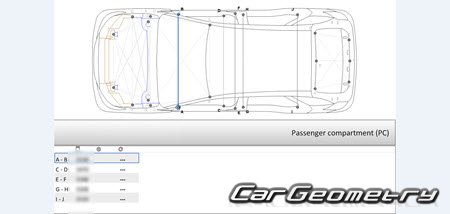 The information included in the manual consists of body dimensions, control points, sectional images of body elements, applicable materials, recommendations for welding types, methods, and materials, locations and materials for applying seals, sound insulation, and anti-corrosion sealants, areas and directions for cutting body elements for subsequent installation of new parts, interior material types, and decoding of markings.