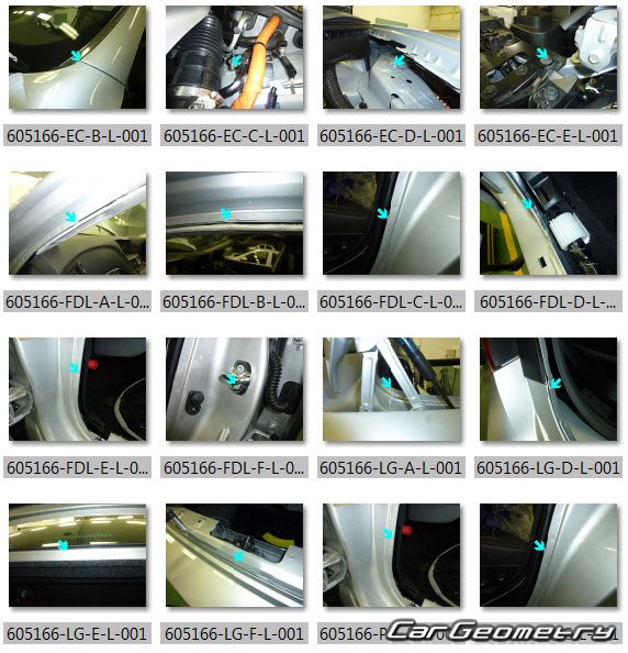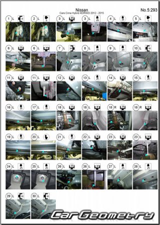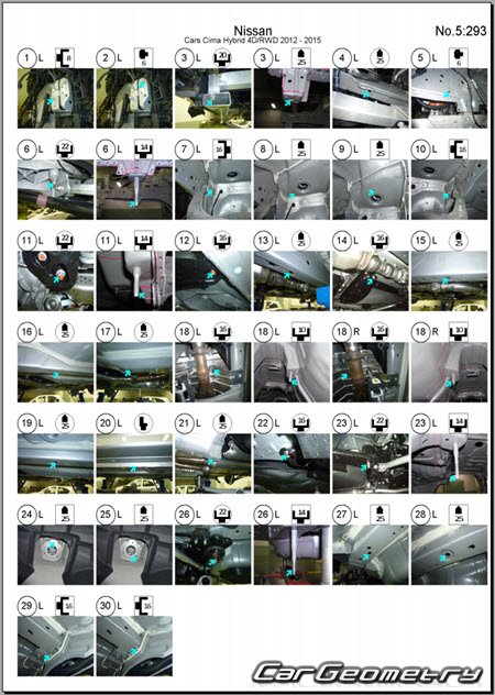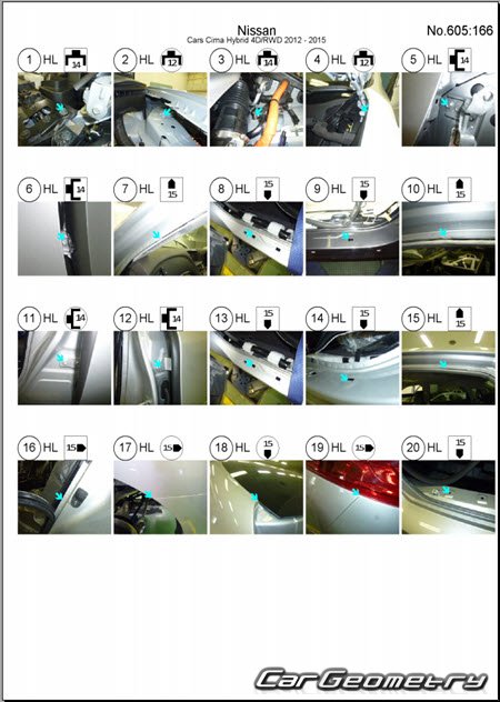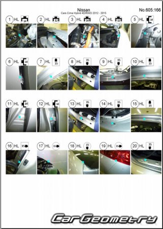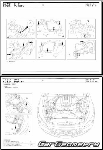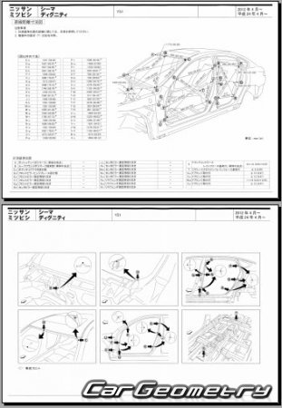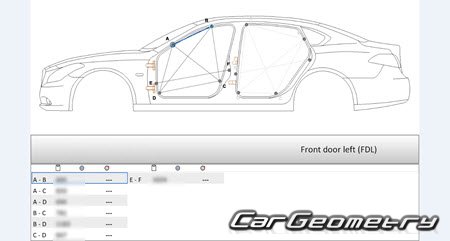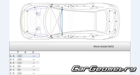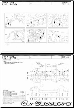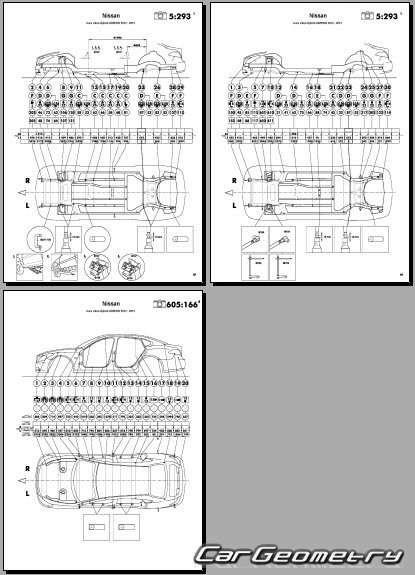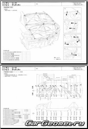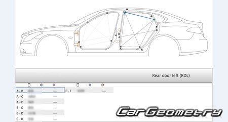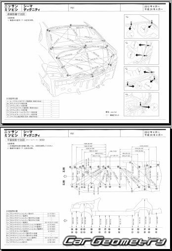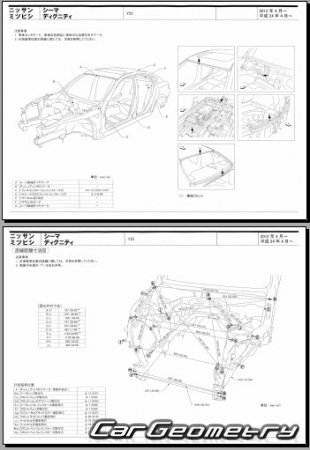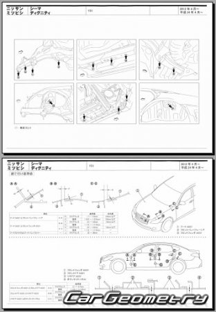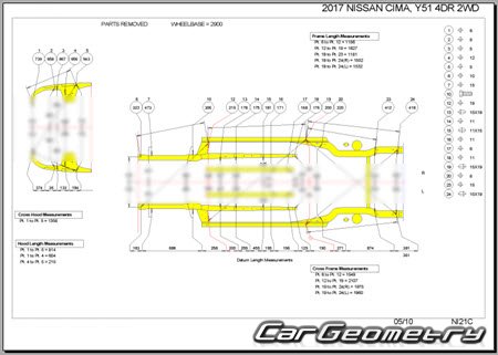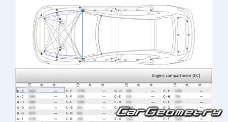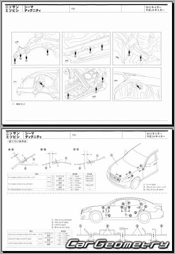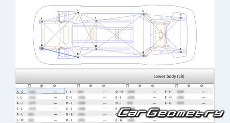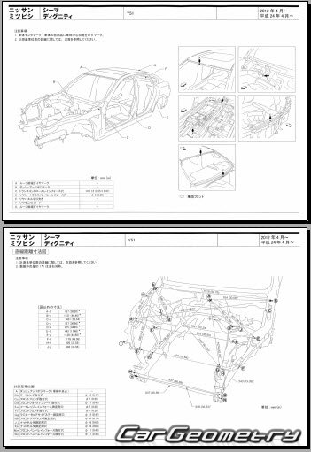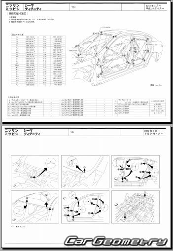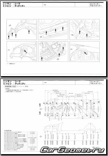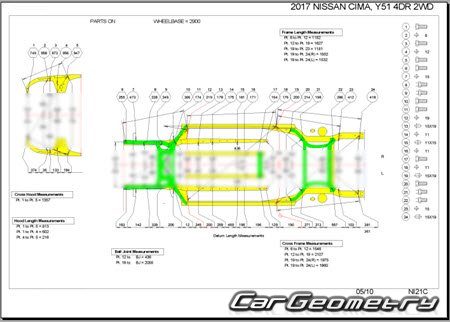 Body dimensions are used to restore the body geometry of Nissan Cima (Y51) 2012–2022. These measurements allow for the verification of the body's geometry and subsequent repair of damaged parts for the right-hand drive Nissan Cima models intended for the Japanese market.