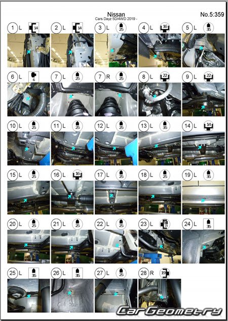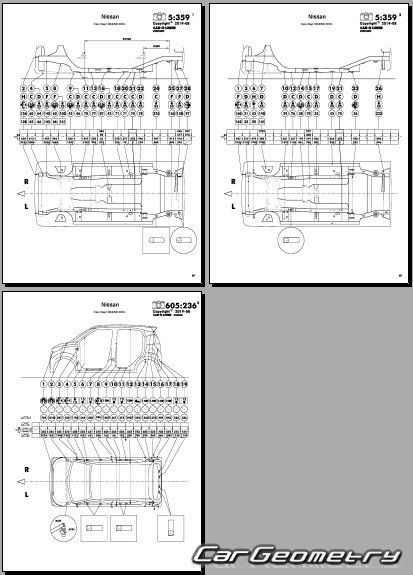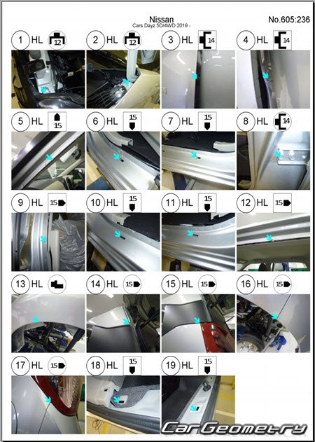 Body dimensions are used to restore the body geometry of Nissan Dayz & Dayz Highway Star (B43W B44W B45W B46W B47W B48W) vehicles from 2024 to 2027. These measurements allow for the verification of the body's geometry and subsequent repair of damaged parts for the right-hand drive Nissan Dayz & Dayz Highway models intended for the Japanese market.