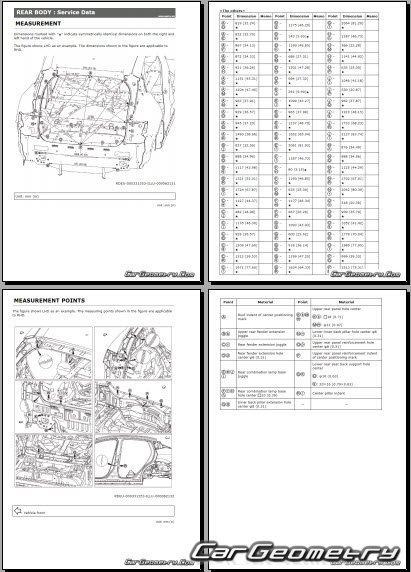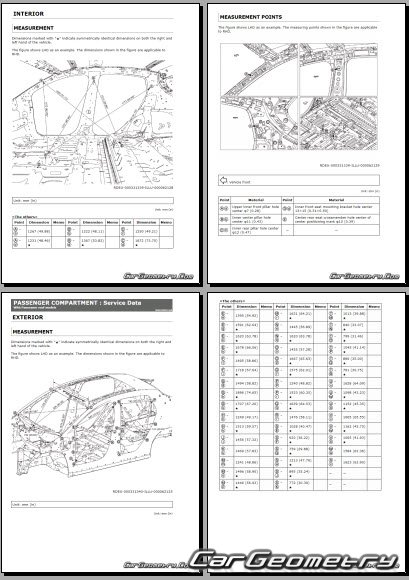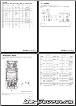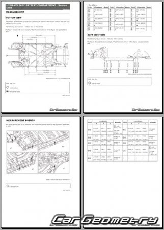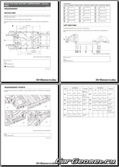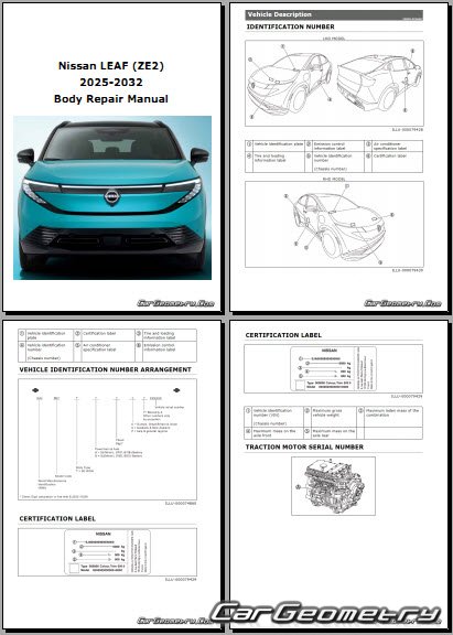The Body Repair Manual for Nissan Leaf (ZE2) 2025-2032 provides detailed information and instructions for repairing and restoring the body of the vehicle. It includes comprehensive body dimensions, control points, and geometric specifications specific to the Nissan Leaf LH model from 2025 to 2032.