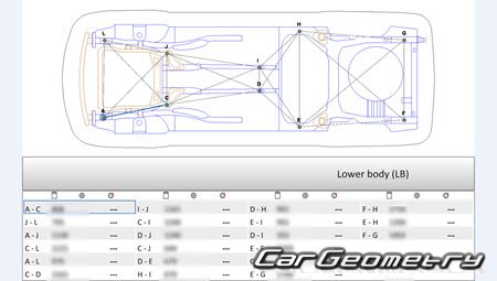 Body dimensions for restoring the body geometry of Opel Astra H (Sedan, Caravan) 2007-2012. With the help of this information, you can check the geometry of the damaged body, as well as carry out restoration work on the straightening of cars.
