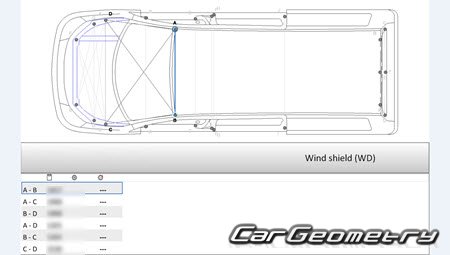 Body dimensions for restoring the body geometry of Peugeot Expert Van (SWB, LWB) 2007–2013. With the help of this information, you can check the geometry of the damaged body, as well as carry out restoration work on the straightening of cars.