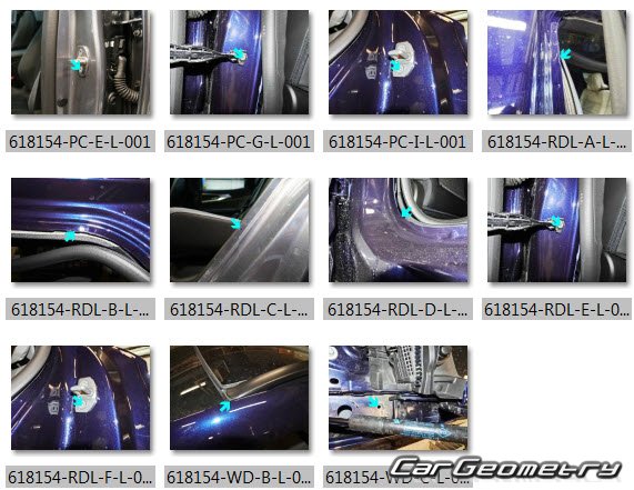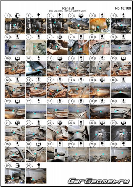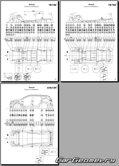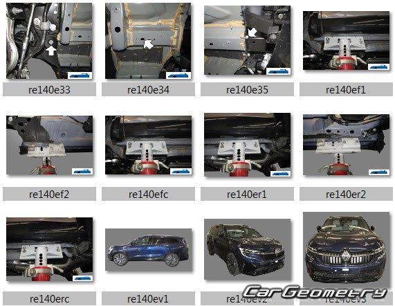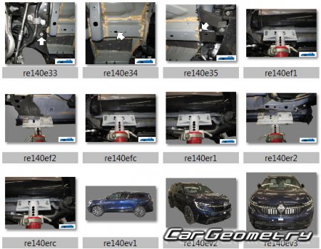Body dimensions for restoring the body geometry of Renault Espace 2023-2032. With the help of this information, you can check the geometry of the damaged body, as well as carry out restoration work on the straightening of cars.