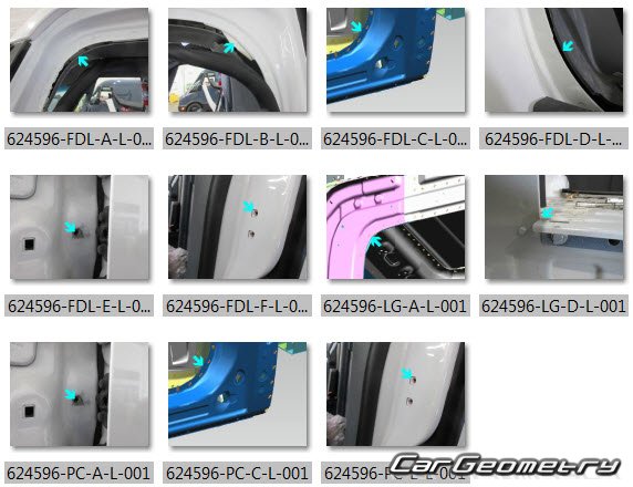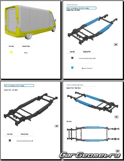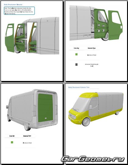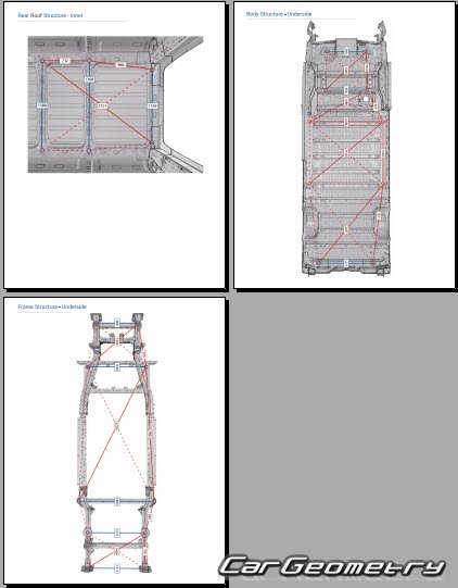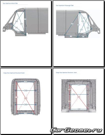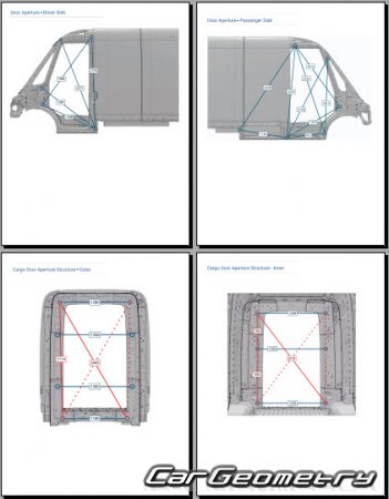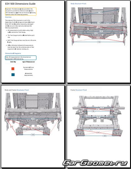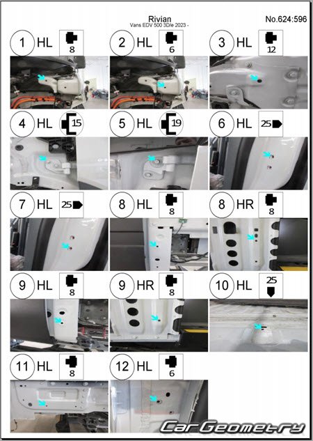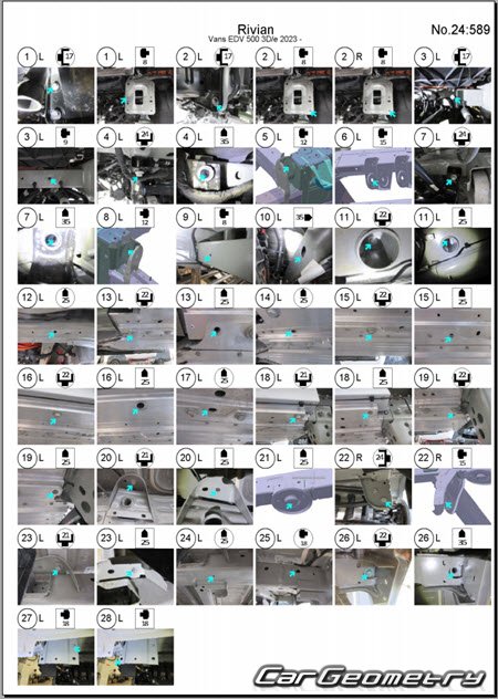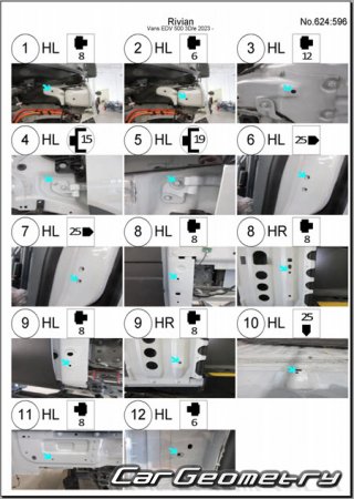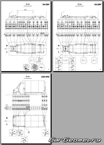 Body dimensions for restoring the body geometry of Rivian EDV 500 2023-2029. With the help of this information, you can check the geometry of the damaged body, as well as carry out restoration work on the straightening of cars.