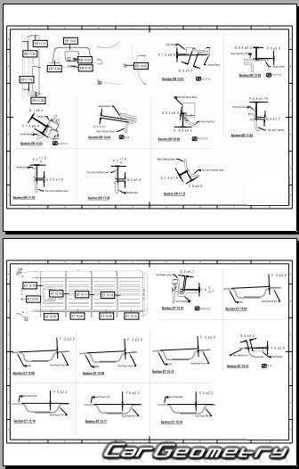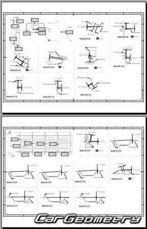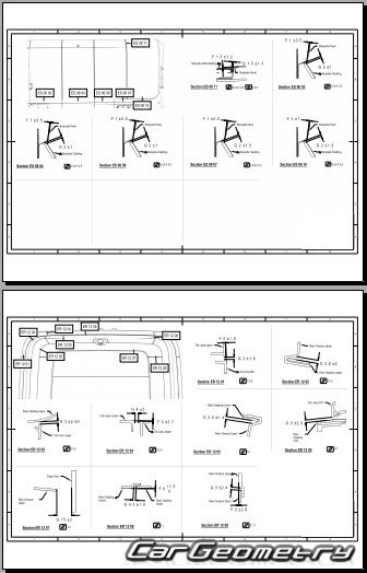 Upperbody dimensions include pillar widths for inside passenger compartment, door, windshield and rear window. Choice of Edge-of-hole or center-of-hole dimensions, widths measured from centerline and individual datum lengths for underbody information, diagonal measurements, deck lid measurements for more extensive and complete collision repairs.