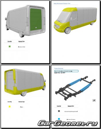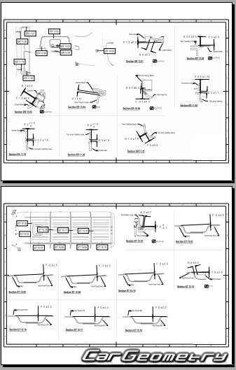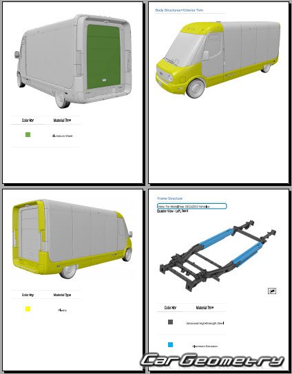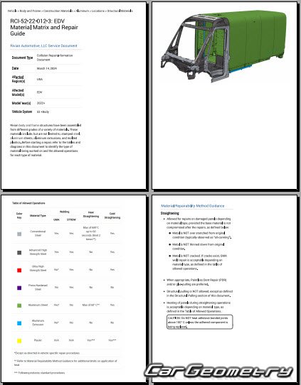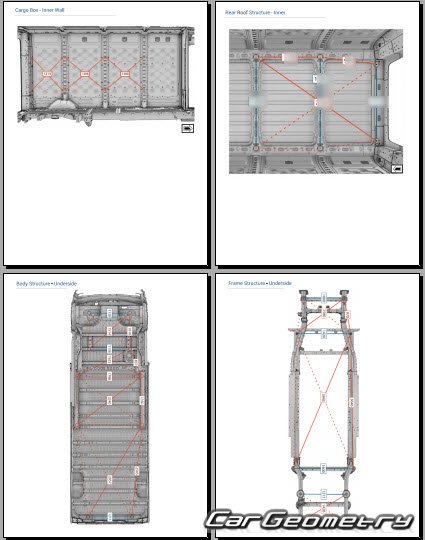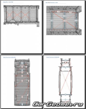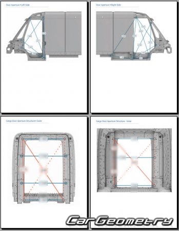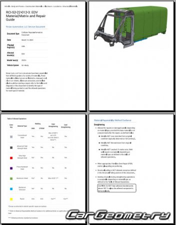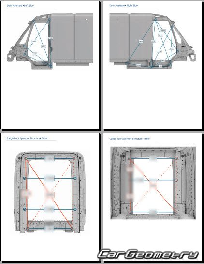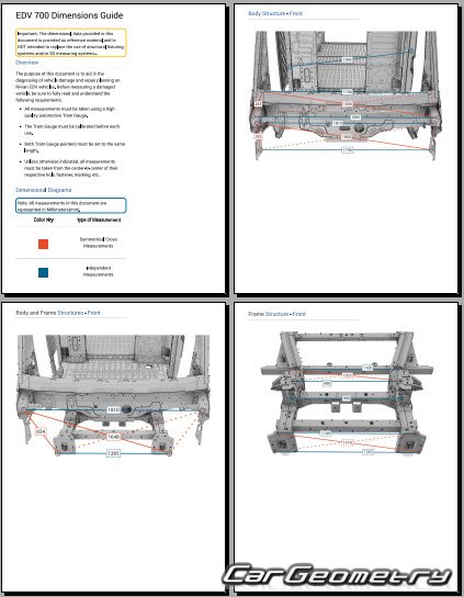 Body dimensions for restoring the body geometry of Rivian EDV 700 2023-2029. With the help of this information, you can check the geometry of the damaged body, as well as carry out restoration work on the straightening of cars.