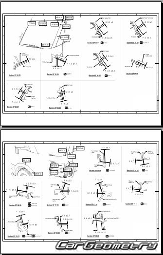 Upperbody dimensions include pillar widths for inside passenger compartment, door, windshield and rear window. Choice of Edge-of-hole or center-of-hole dimensions, widths measured from centerline and individual datum lengths for underbody information, diagonal measurements, deck lid measurements for more extensive and complete collision repairs.