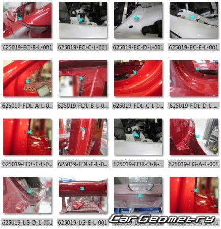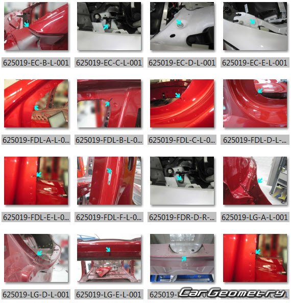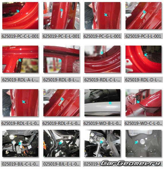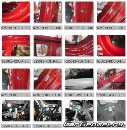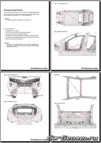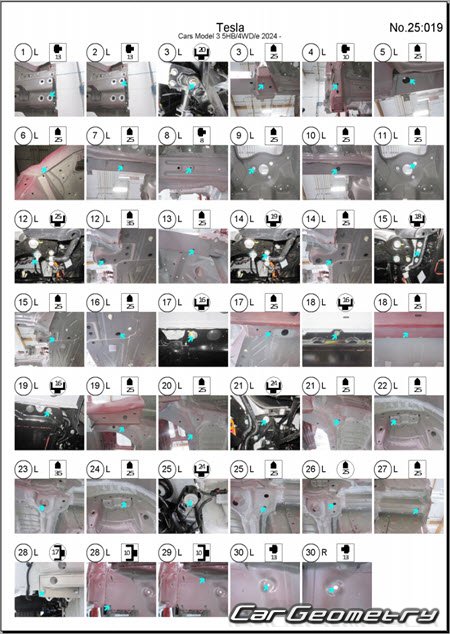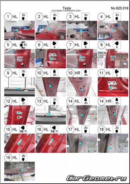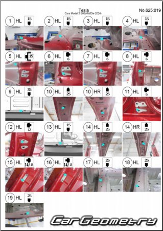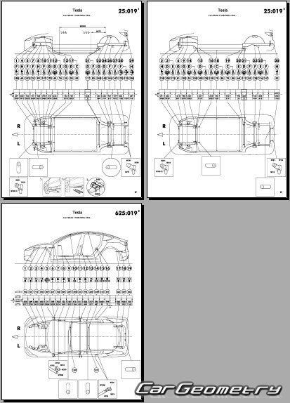 Body dimensions for restoring the body geometry of Tesla Model 3 2024-2029. With the help of this information, you can check the geometry of the damaged body, as well as carry out restoration work on the straightening of cars.