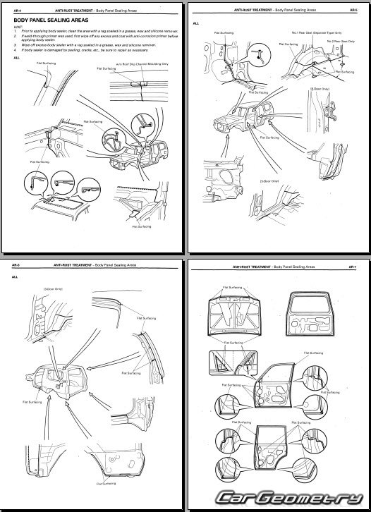 Overall, the Toyota Land Cruiser Prado 90 1996–2003 Bodyshop Manual, spanning over 131 pages in English, is an indispensable resource for body repair technicians and individuals involved in the repair and restoration of Toyota Land Cruiser Prado. It contains a wealth of useful and necessary information to ensure precise and reliable body repairs in accordance with the manufacturer's recommendations.