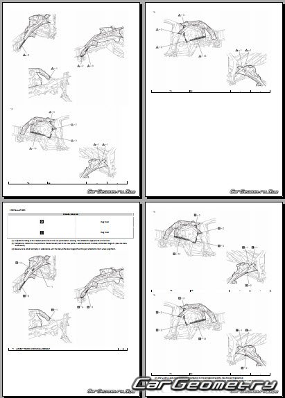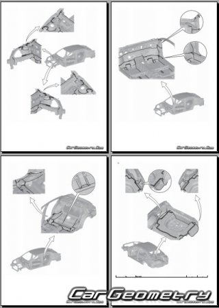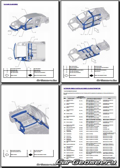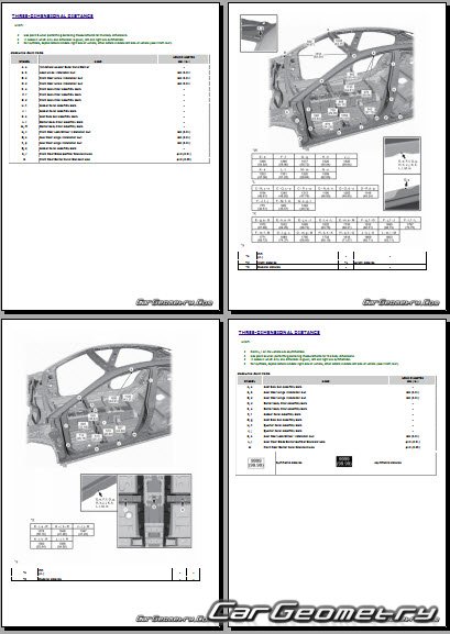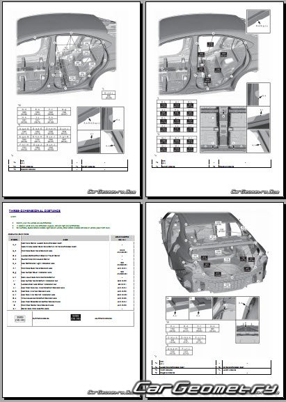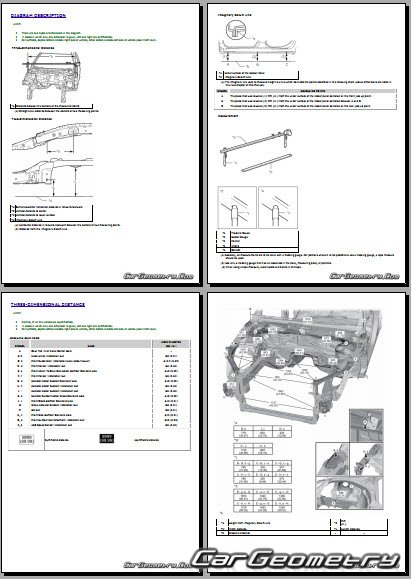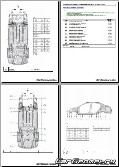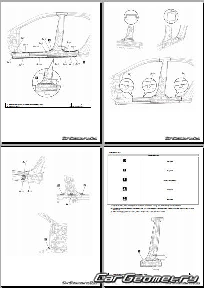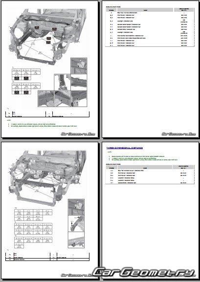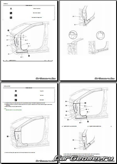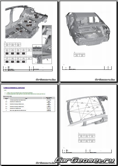 One of the key features of the manual is its coverage of body dimensions and control points. These dimensions provide precise measurements of the vehicle's body components, allowing technicians to accurately assess any deviations from the original specifications. The control points serve as reference points for checking the alignment and geometry of the vehicle's body, ensuring that repairs are carried out with precision.