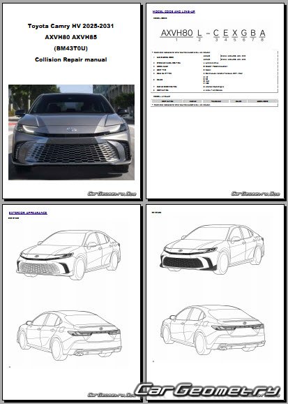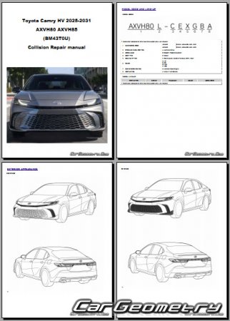 Toyota Camry Hybrid (AXVH80 AXVH85) 2025-2031 Collision Repair manual is a comprehensive guide that provides in-depth information and instructions for repairing and restoring the body of the Toyota Camry Hybrid with left-hand drive. The manual includes step-by-step repair procedures for various body panels and components, ensuring accurate and efficient collision repairs.