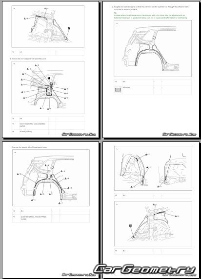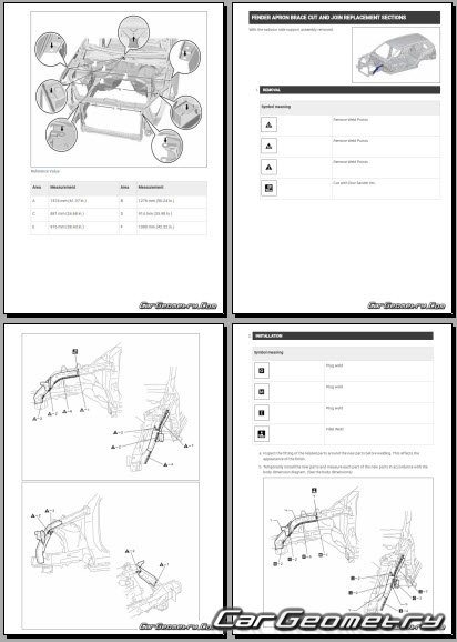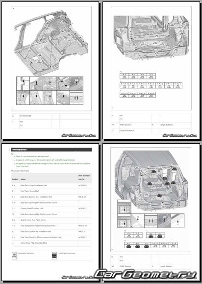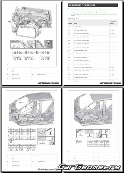 One of the key features of the manual is its coverage of body dimensions and control points. These dimensions provide precise measurements of the vehicle's body components, allowing technicians to accurately assess any deviations from the original specifications. The control points serve as reference points for checking the alignment and geometry of the vehicle's body, ensuring that repairs are carried out with precision.