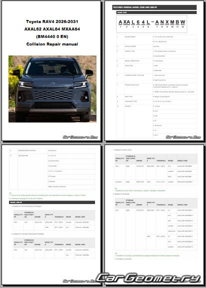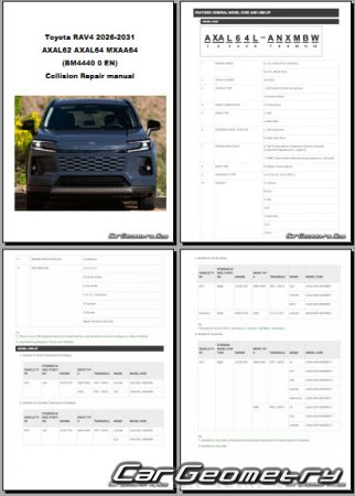 Toyota RAV4 (XA60) 2026-2031 Body Repair Manual includes 387 pages in English. This collection contains a huge amount of extremely useful and necessary information for those working in body shops themselves and the owners of body repair companies involved in Toyota RAV4 body repair.