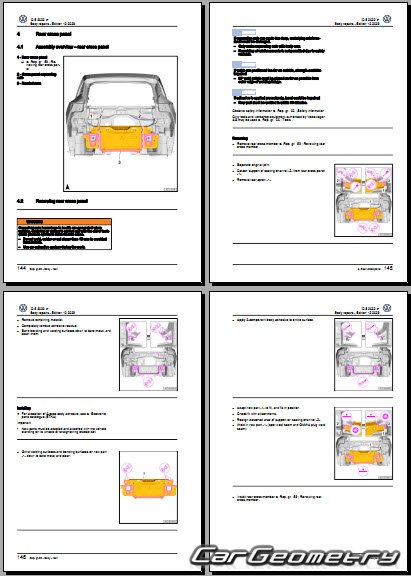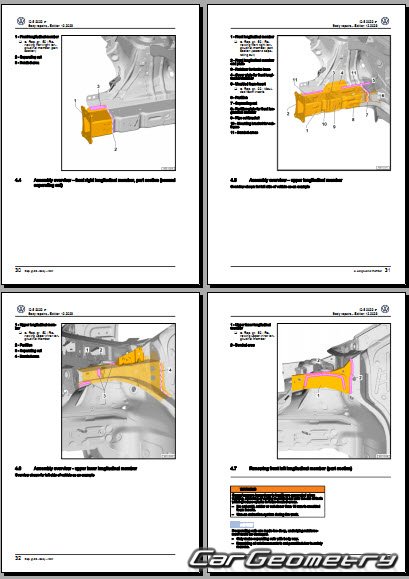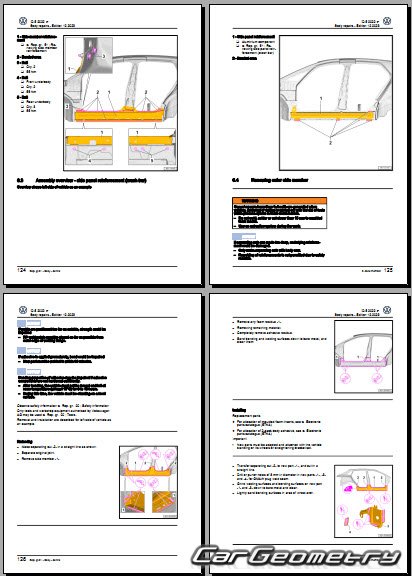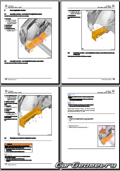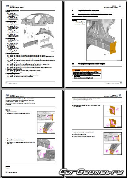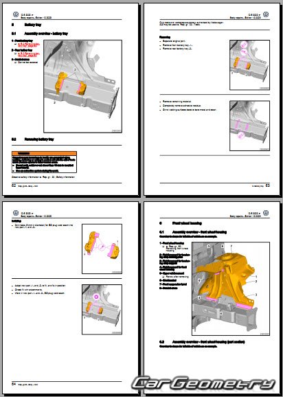 The factory body repair manual contains body dimensions for the Volkswagen ID.5 2022-2027 and includes description of various body parts replacement, body dimension, control points for the VW ID.5.