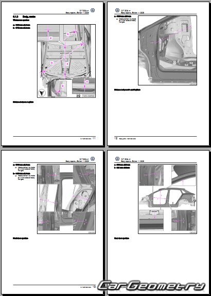 One of the key features of the manual is its coverage of body dimensions and control points. These dimensions provide precise measurements of the vehicle's body components, allowing technicians to accurately assess any deviations from the original specifications. The control points serve as reference points for checking the alignment and geometry of the vehicle's body, ensuring that repairs are carried out with precision.