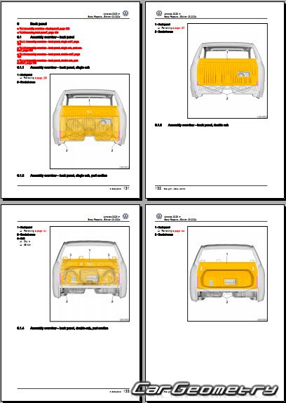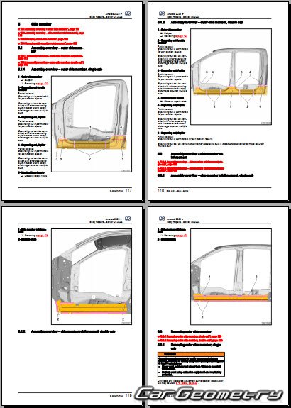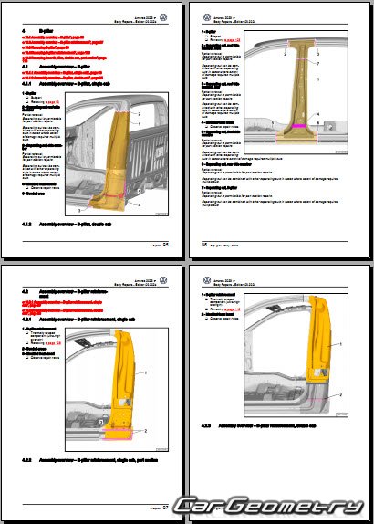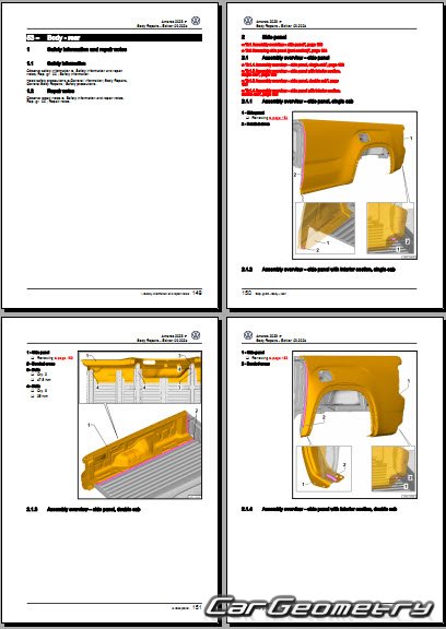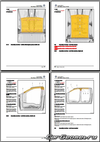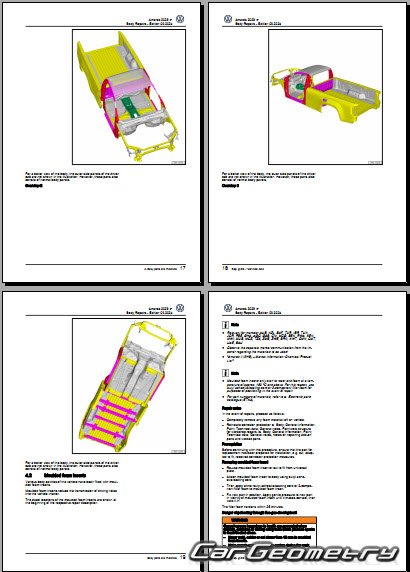Overall, theVolkswagen Amarok 2023-2031 Body Repair Manual, spanning over 212 pages in English, is an indispensable resource for body repair technicians and individuals involved in the repair and restoration of VWAmarok vehicles. It contains a wealth of useful and necessary information to ensure precise and reliable body repairs in accordance with the manufacturer's recommendations.