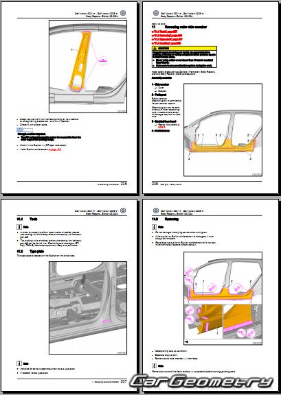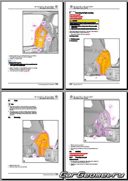 Volkswagen Golf Variant 2021-2026 Body Repair Manual 339 pages in English. This collection contains a huge amount of extremely useful and necessary information for those working in body shops themselves and the owners of body repair companies involved in VW Golf Variant body repair.