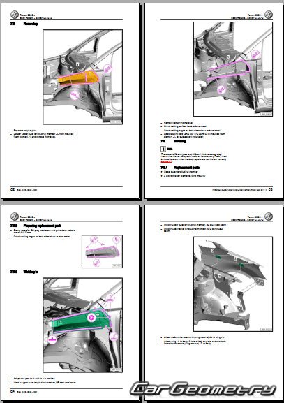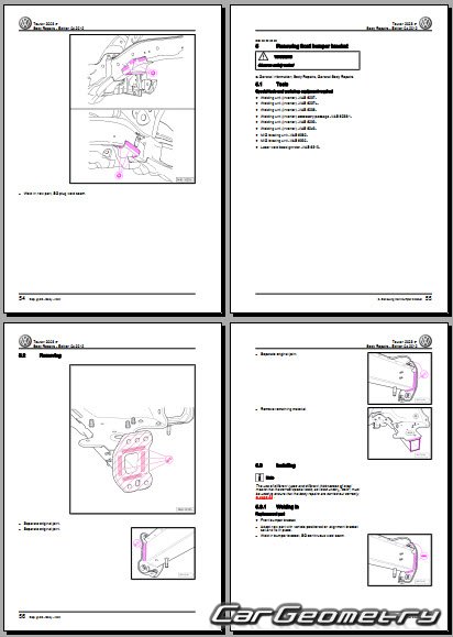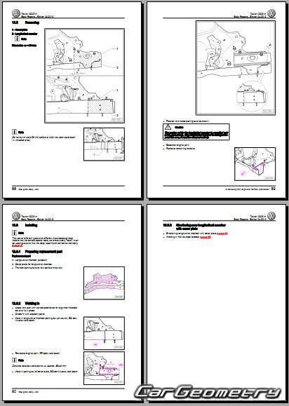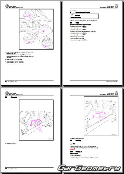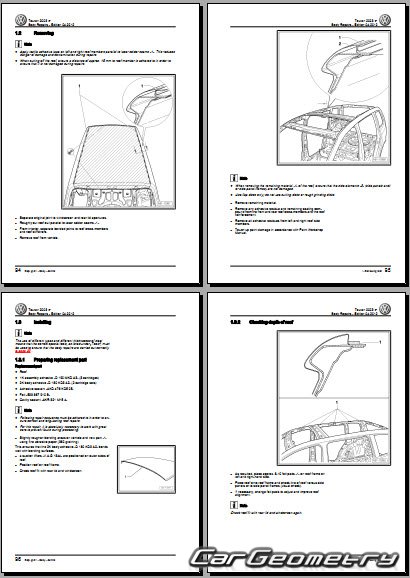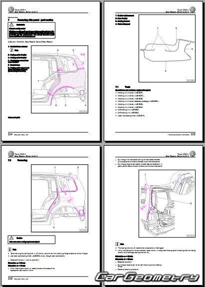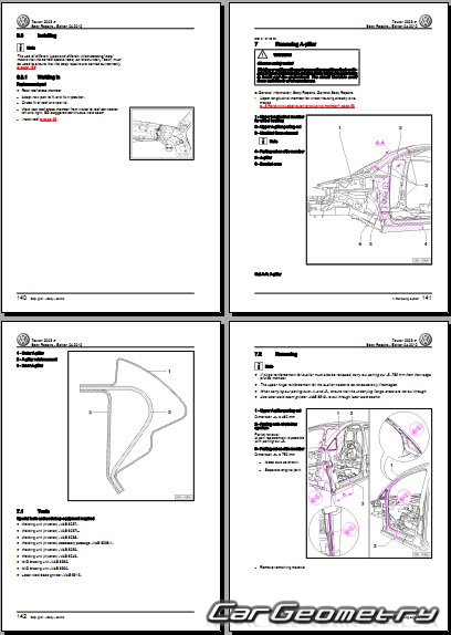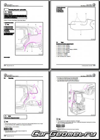 Volkswagen Touran (1T1, 1T2) 2003-2010 Body Repair Manual 246 pages in English. This collection contains a huge amount of extremely useful and necessary information for those working in body shops themselves and the owners of body repair companies involved in VW Touran body repair.