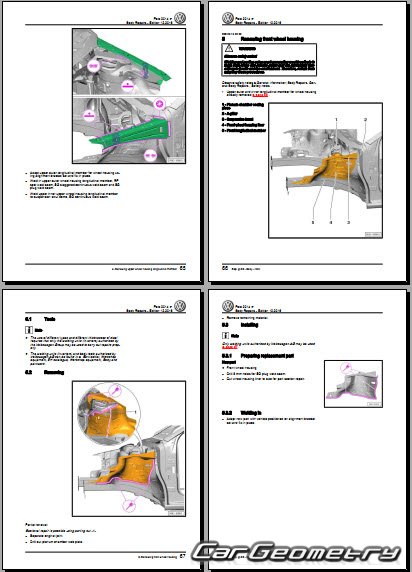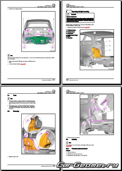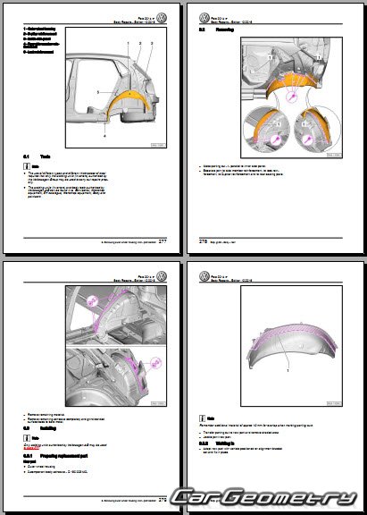 Volkswagen Polo (Typ 6R) 2009–2018 Body Repair Manual 279+287 pages in English. This collection contains a huge amount of extremely useful and necessary information for those working in body shops themselves and the owners of body repair companies involved in VW Polo body repair.
