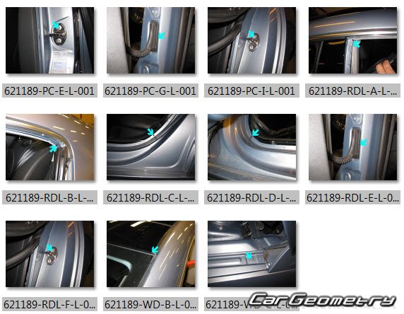 Information for the VW CC 2012–2018 body geometric dimensions, control points, images of body elements, materials used, recommendations on applicable types, methods and materials for the welding points; places and materials for applying seam, soundproof and anti-corrosion sealants; points and directions for pre-cuts of body parts for the future installation of the new ones; types of interior materials, definitions and decoding.